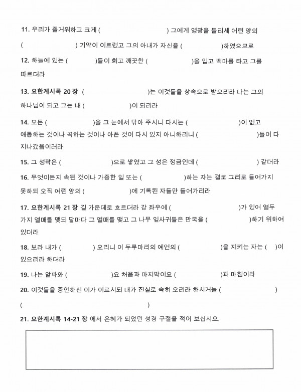 성경통신반 #21-21 작성자 정보 FKUMC 작성 작성일 2021.05.20 00:05 컨텐츠 정보 4,304 조회 목록 답변 본문 성경통신반 문제지 #21-21 입니다. 관련자료 이전 성경통신반 #21-22 작성일 2021.05.26 05:20 다음 성경통신반 #21-20 작성일 2021.05.13 00:59 댓글 0개 등록된 댓글이 없습니다. 목록 답변