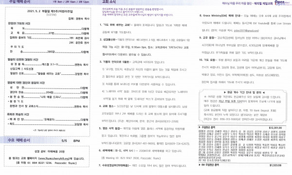 2021년 5월 2일 부활절 후 제5주/어린이주일 작성자 정보 FKUMC 작성 작성일 2021.05.02 00:41 컨텐츠 정보 5,133 조회 목록 답변 본문 아래 날짜를 클릭하셔서 주보를 다운로드 받으실 수 있습니다.2021년 5월 2일 주보 관련자료 이전 2021년 5월 9일 부활절 후 제6주/어버이주일 작성일 2021.05.09 01:44 다음 2021.04.25 창립 기념 주일 작성일 2021.04.25 01:52 댓글 0개 등록된 댓글이 없습니다. 로그인한 회원만 댓글 등록이 가능합니다. 목록 답변